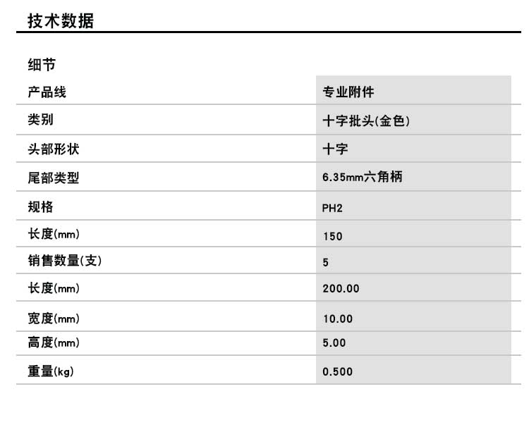 產(chǎn)品名字:博世螺絲批頭金色支裝PH2/150mm5