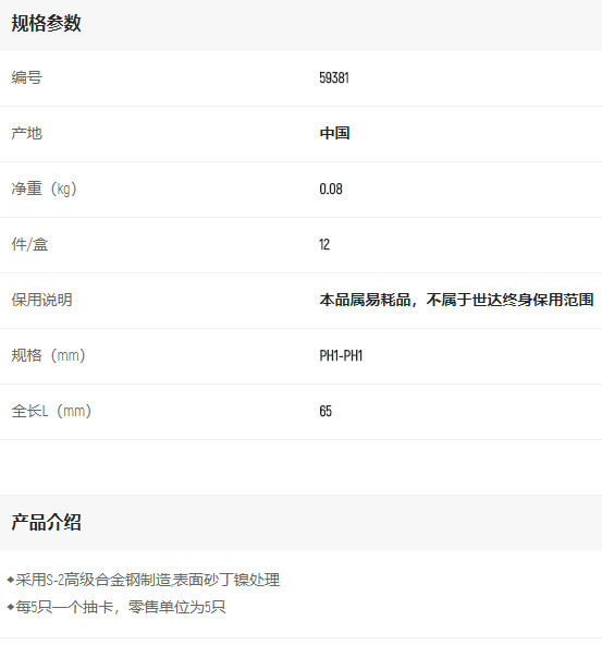 產(chǎn)品名字:世達6.3mm系列65mm長雙頭旋具頭PH1-PH1